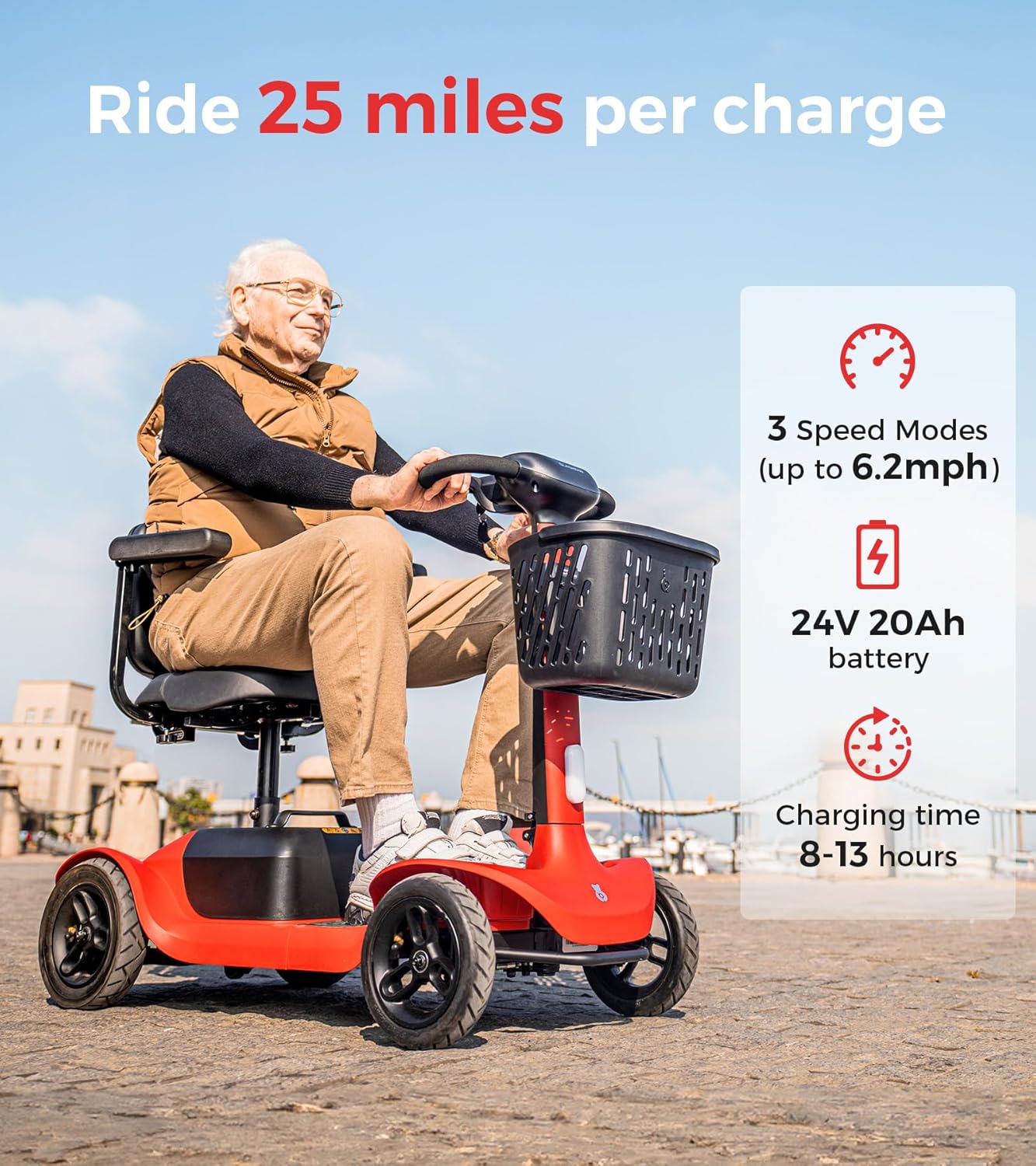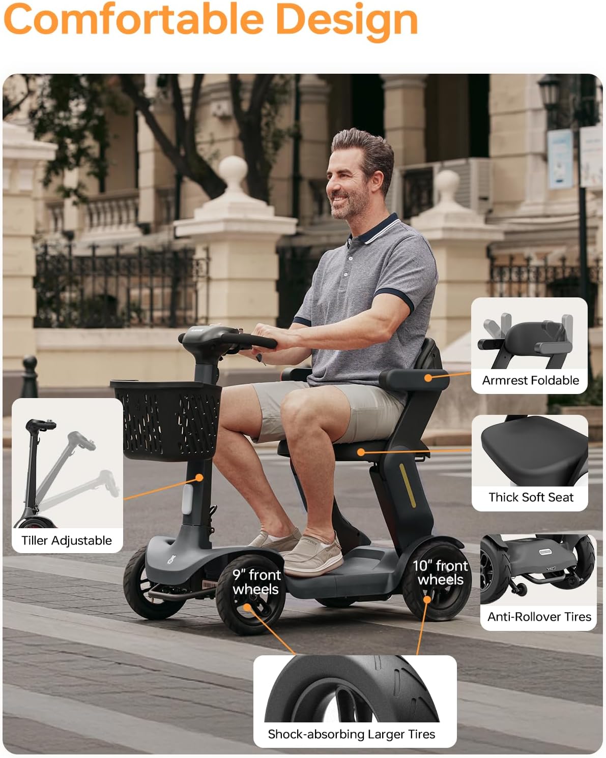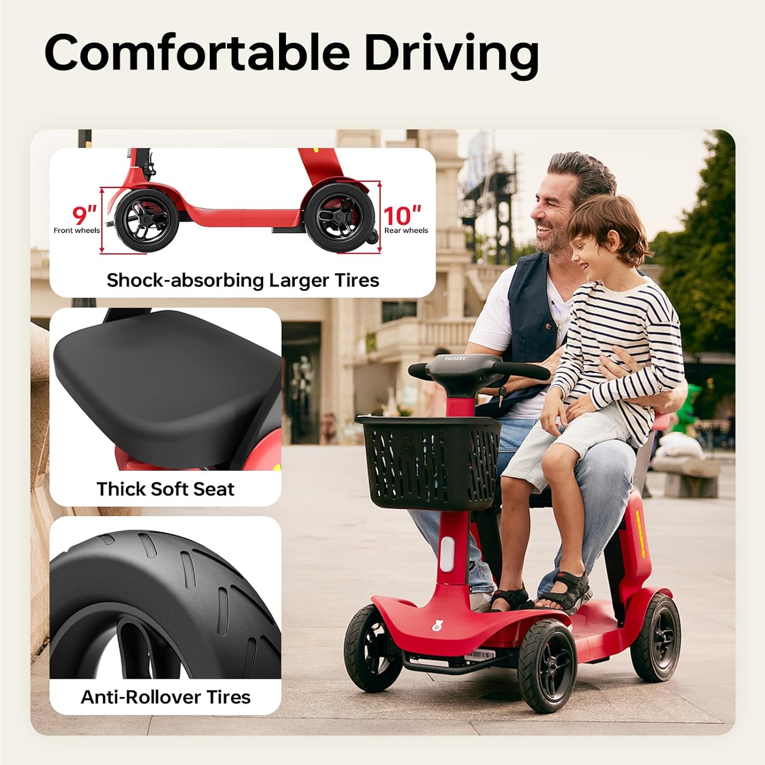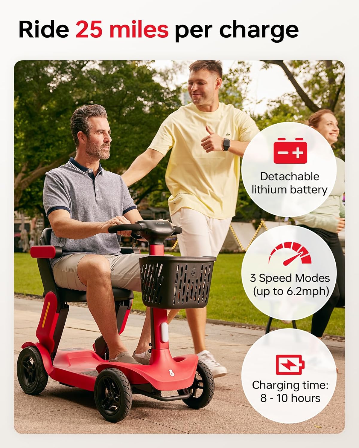 • Multiple Speed Modes: 3 adjustable speeds up to 6.2 MPH, perfect for walking your dog, shopping, or visiting parks.