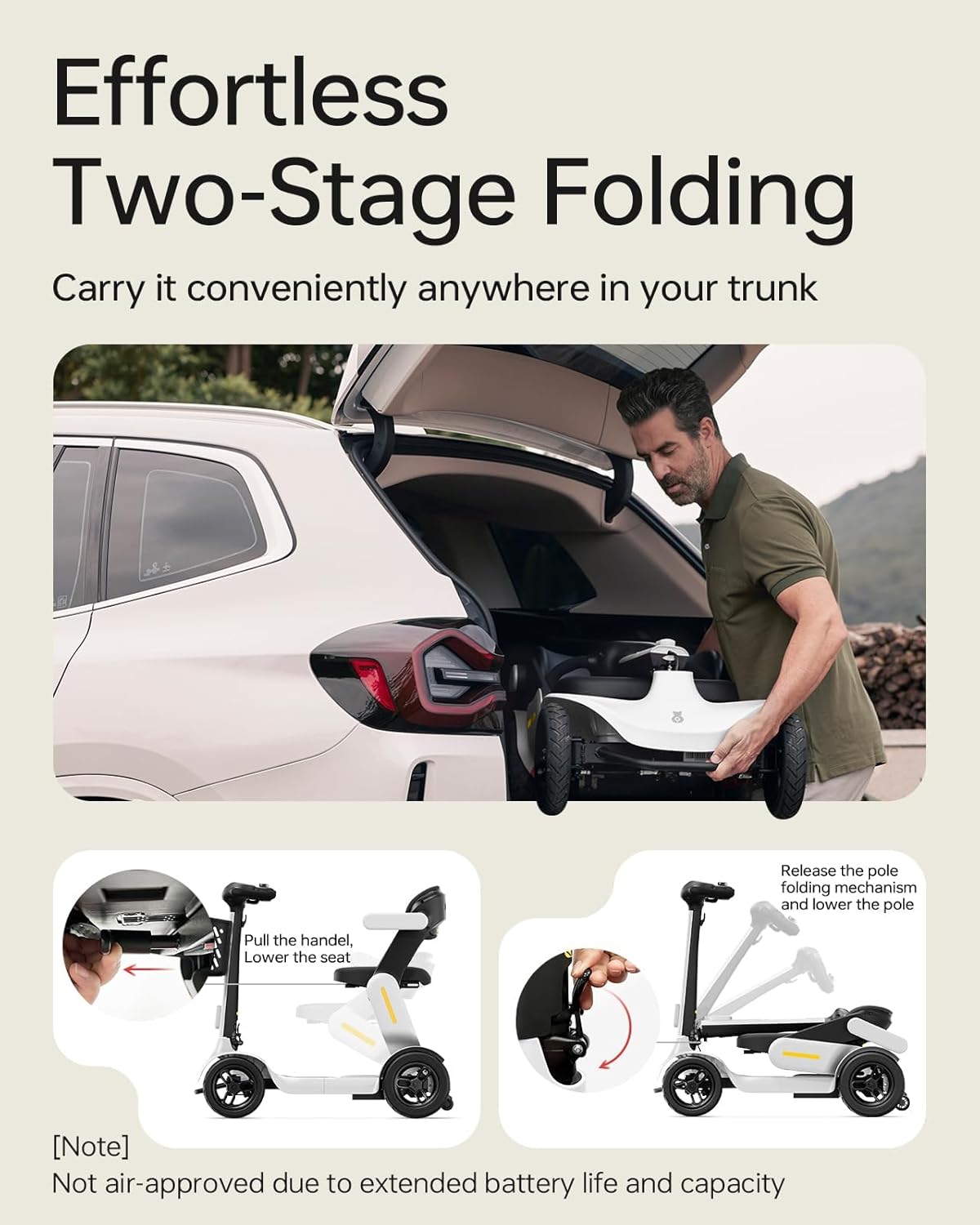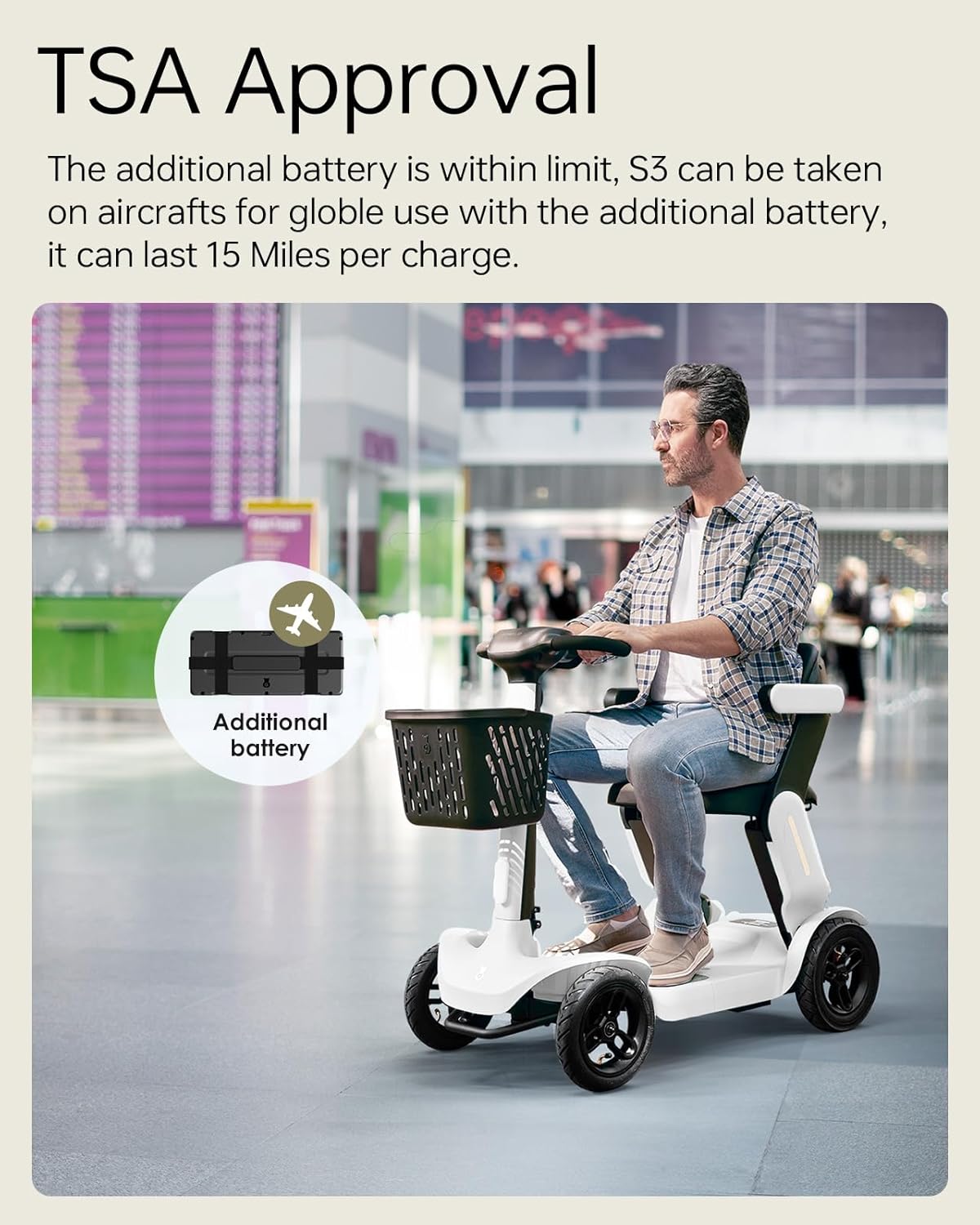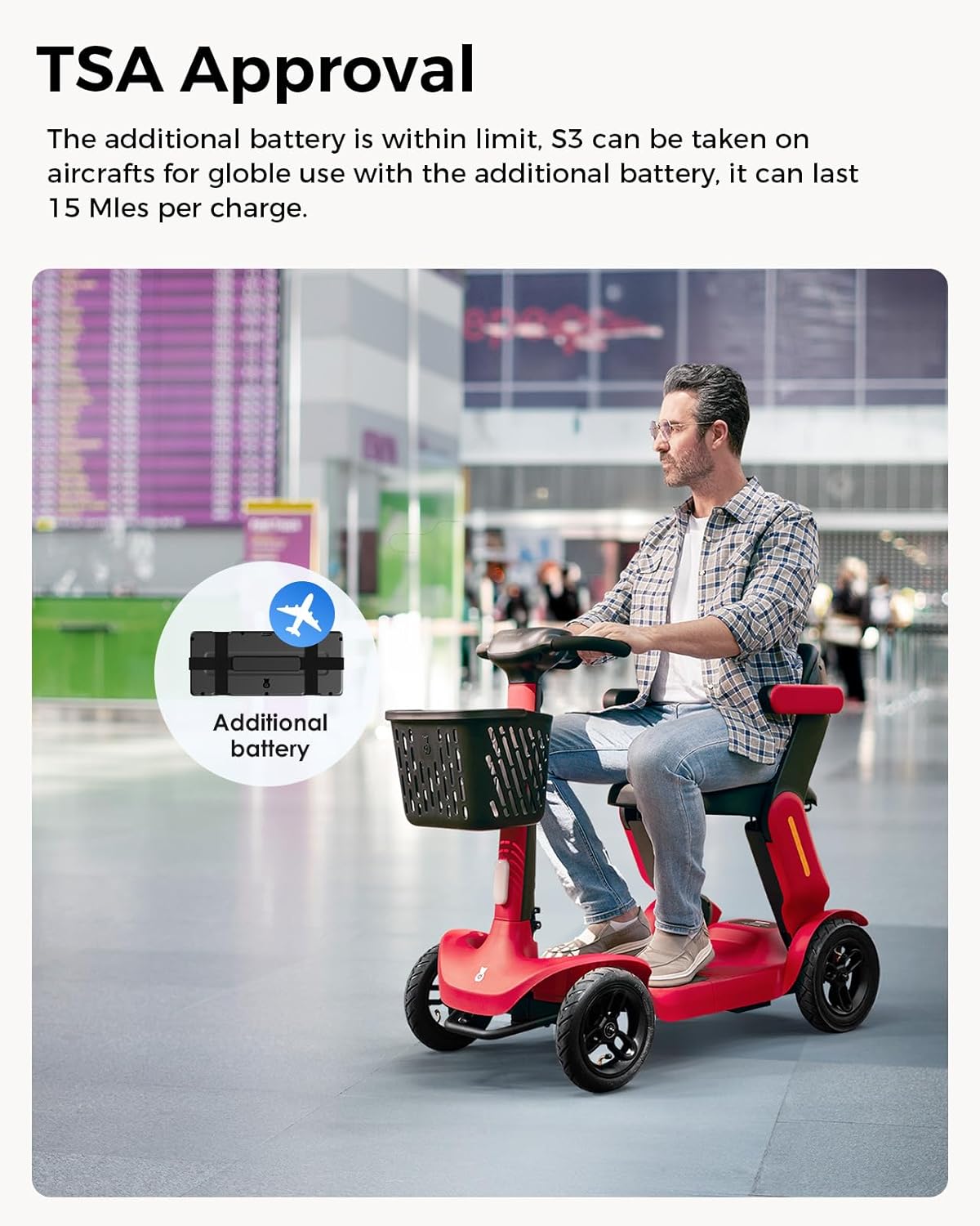 • Extended Range & Dual Battery: Up to 40 miles per charge with two powerful detachable lithium batteries. Additional battery is airline-approved, perfect for travel.