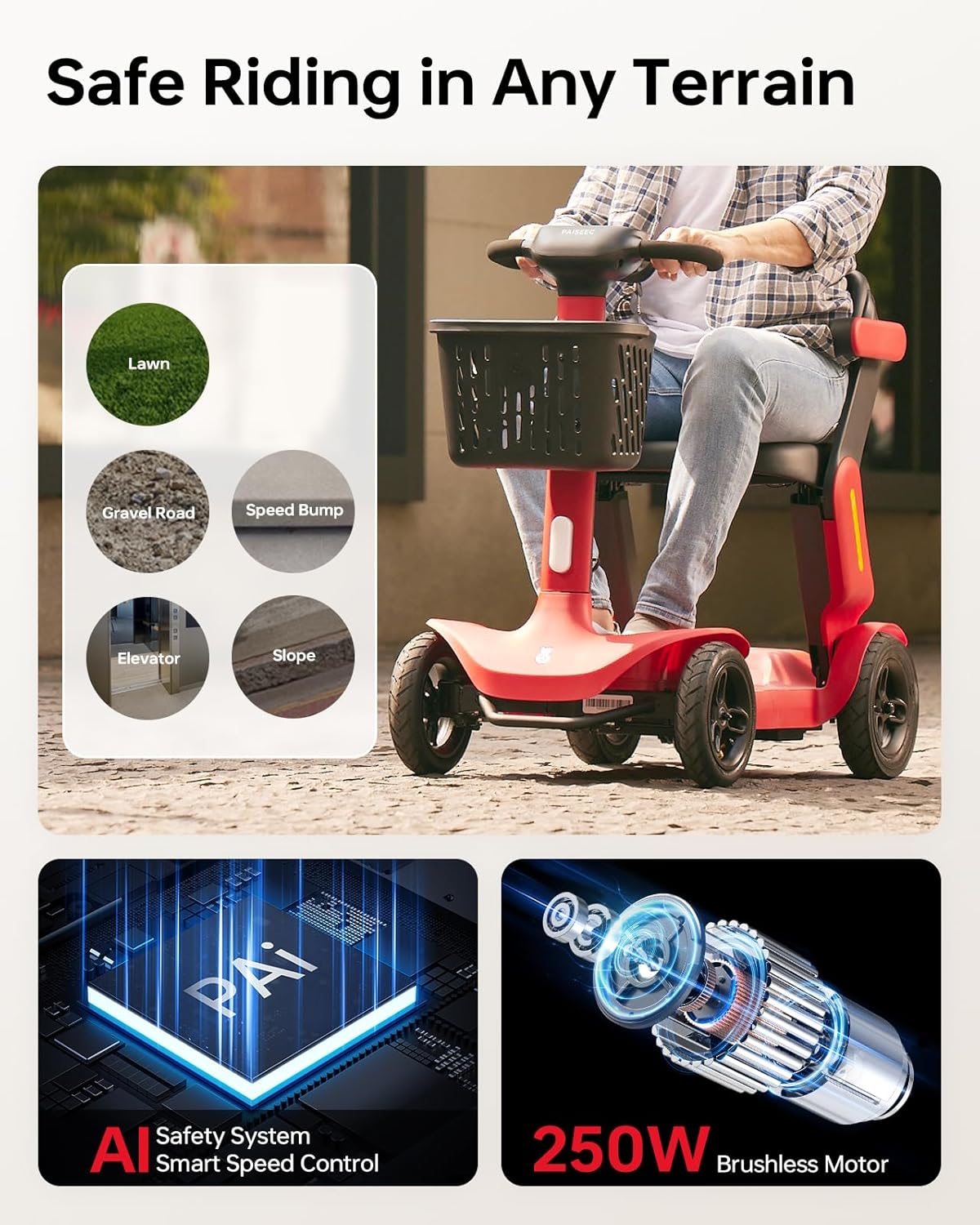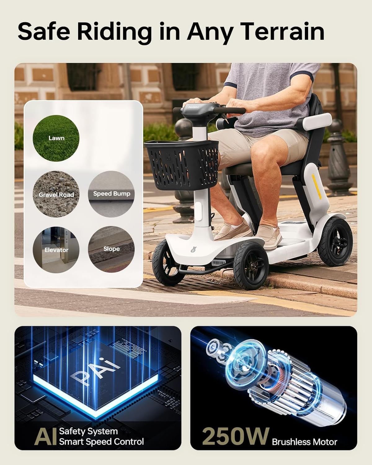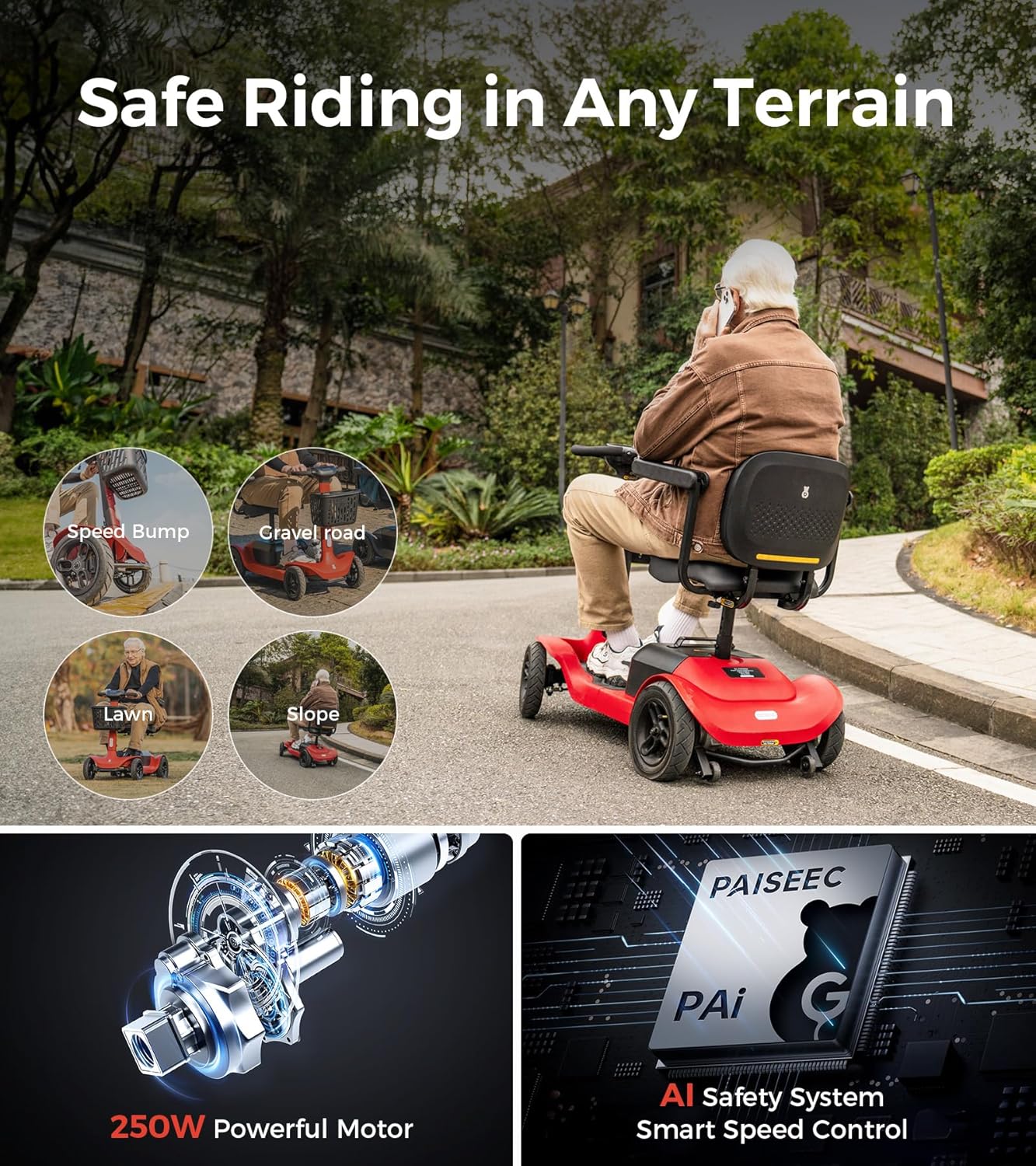 Paiseec S3 Pro Foldable 4-Wheel Mobility Scooter for Seniors, 40 Mile Range, 250W, All-Terrain