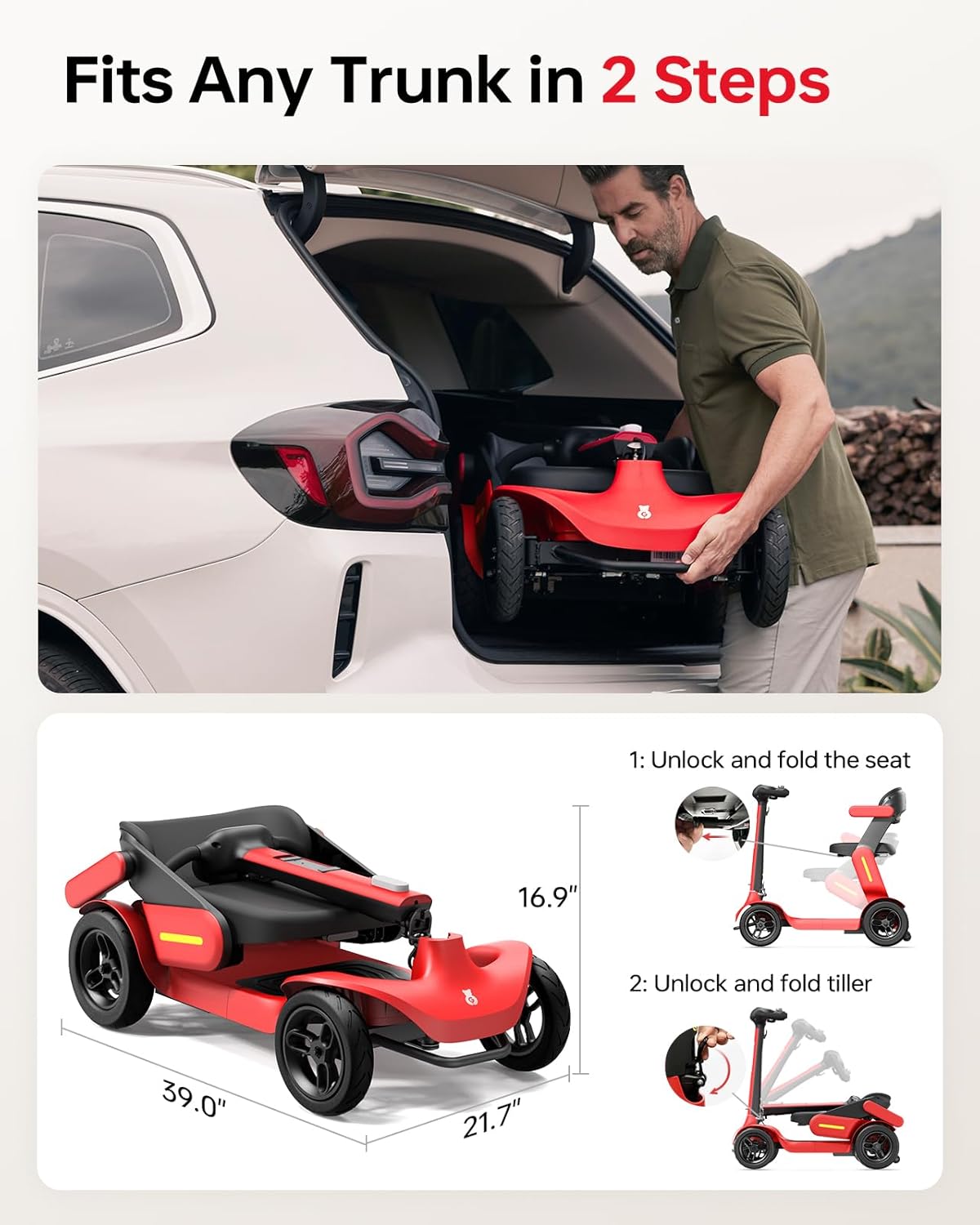 • Quick Fold & Portable: Patented 2-step folding design collapses to 39″ × 22″ × 17″, fits 95% of car trunks. Weighs only 70 lbs, with heaviest part 61 lbs for easy transport.