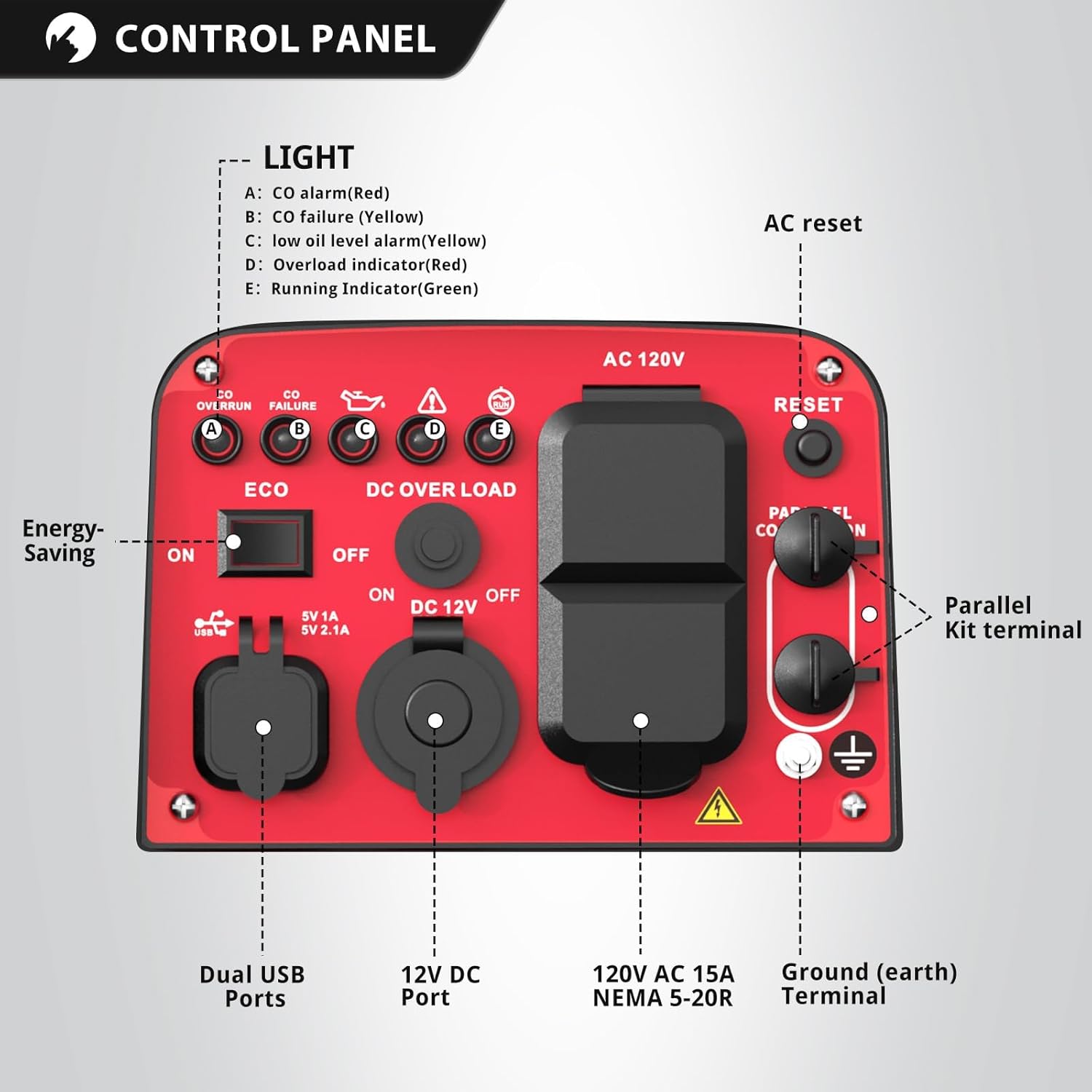 • Quiet Operation – Operates at just 76 dB from 23 feet, making it suitable for residential use, camping, tailgating, and other quiet-required environments.