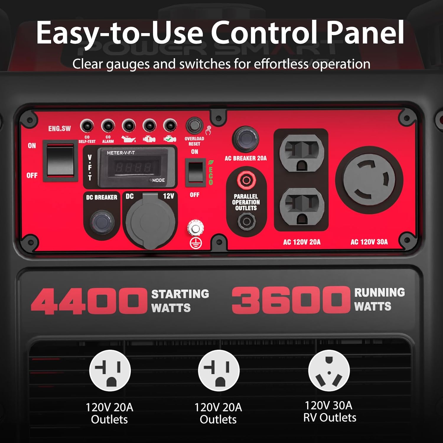 • High Power Performance – Delivers 4400 starting watts and 3600 running watts, providing dependable power for homes, RVs, outdoor events, and job sites.