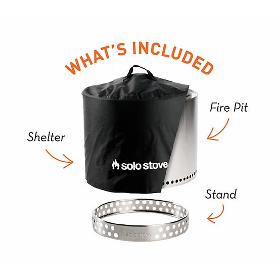 With its durable stainless steel construction, the Solo Stove Bonfire is built to last while providing efficient heat in areas of 4-8 feet. The removable base plate and ash pan ensure easy cleanup, and the included Bonfire Stand protects surfaces while keeping airflow optimized. The Black Bonfire Shelter offers extra protection when the fire pit is not in use.