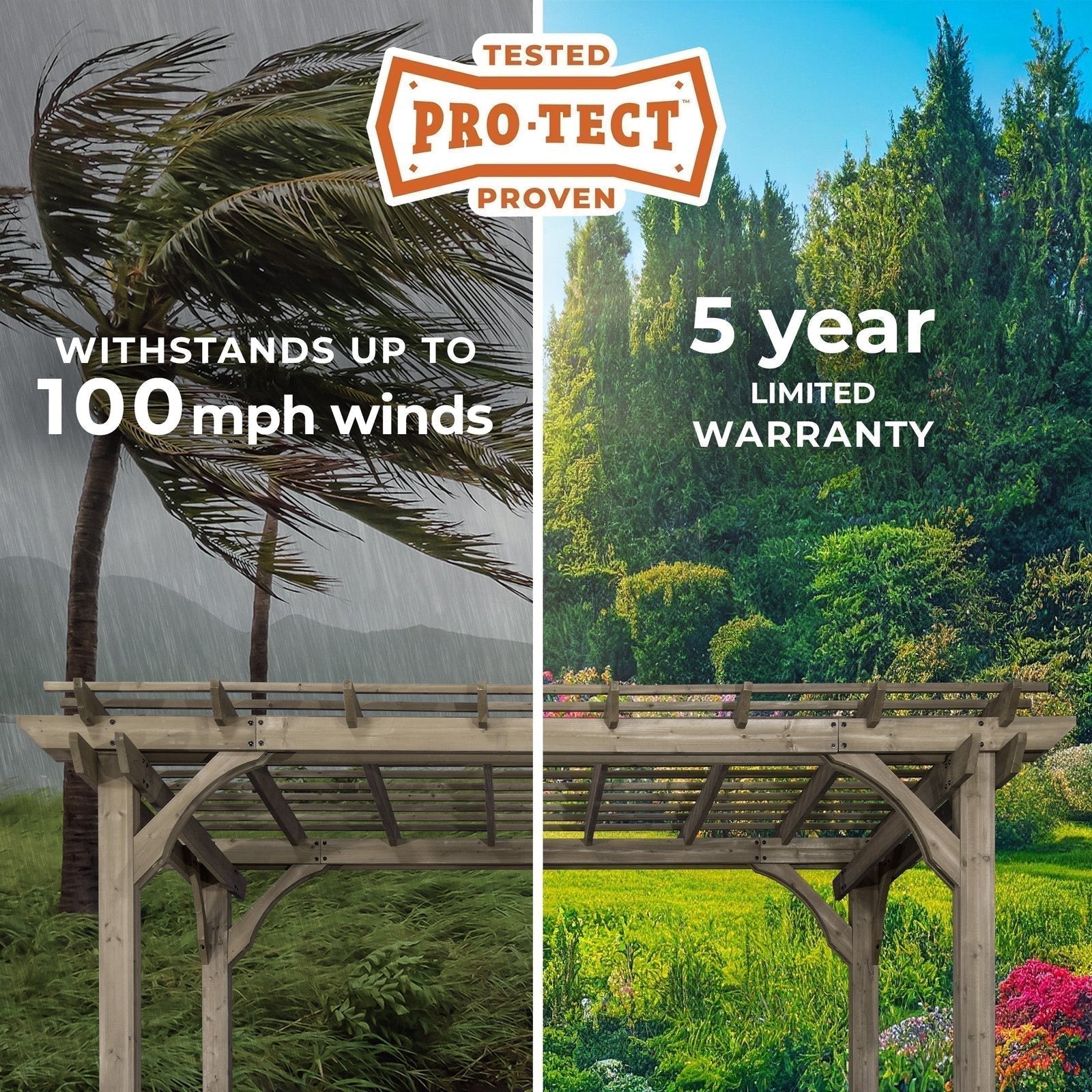 Enliven your backyard with our Somerville 14×10 pergola. Not only does it capture the eye with its stylish design, it also stands strong against the elements, PRO-TECT™ Tested and Proven, ready to resist winds up to 100 mph*.