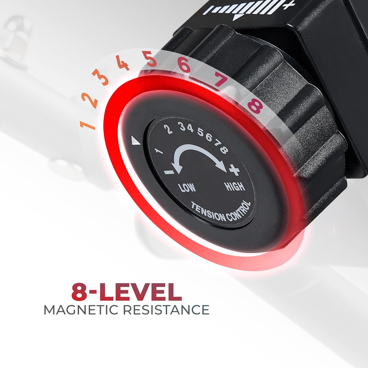 • Magnetic Resistance: 8 levels of smooth magnetic resistance allow precise control for customized workout intensity.