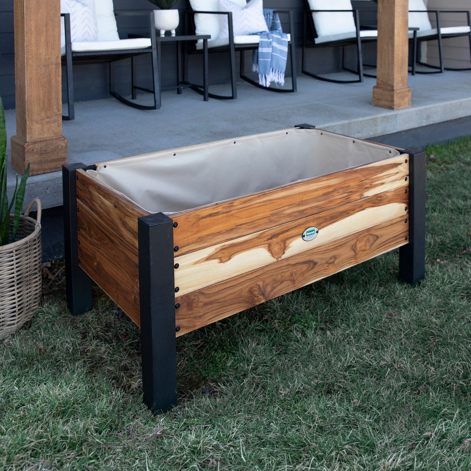 Tropical Teak naturally outsmarts decay, rot, water, and bugs, and sturdy powder-coated steel legs and a soft liner ensure this gem remains ageless. Whether you use it for delightful blooms or tasty greens, this is a surefire showstopper!