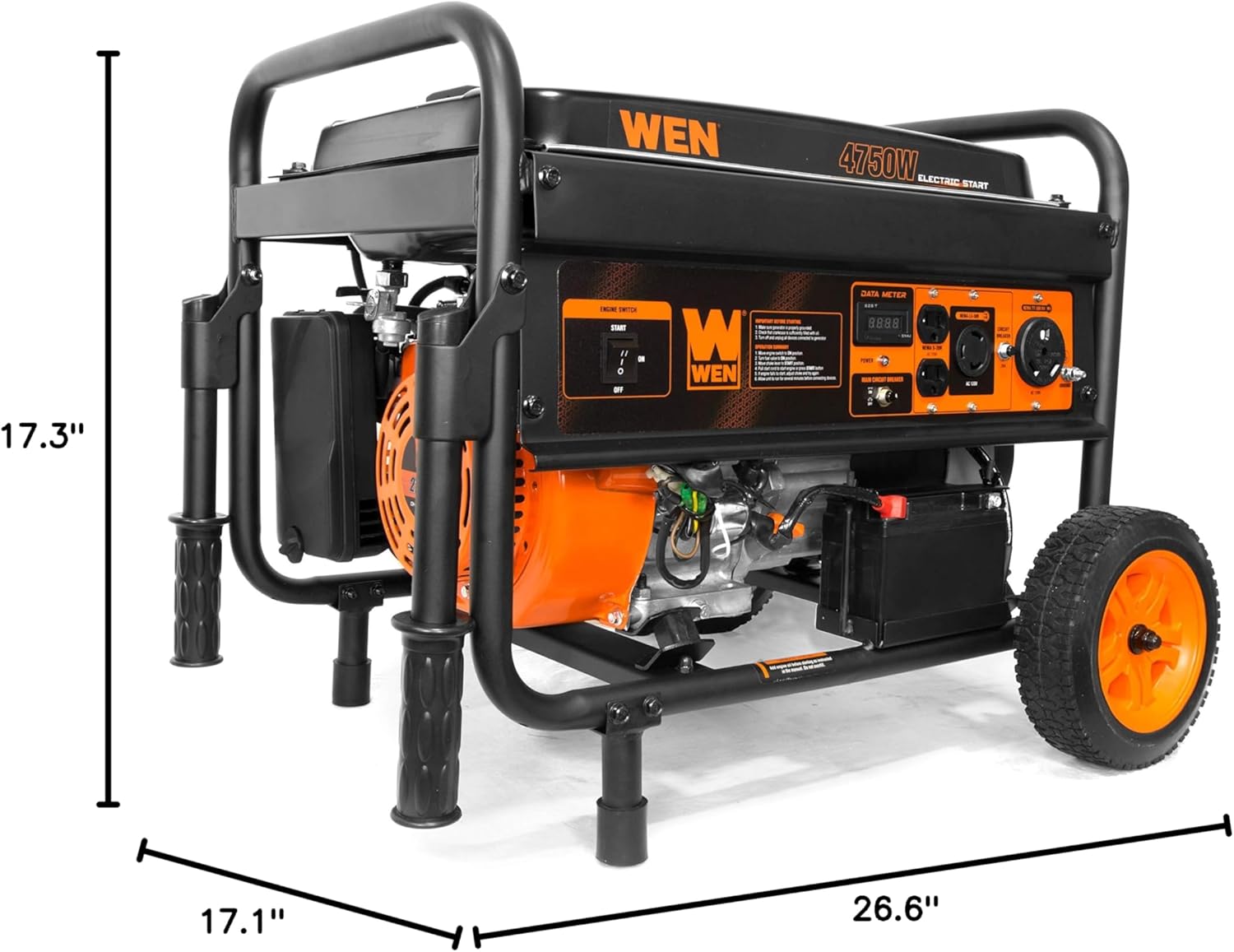 Extended Runtime – 4.3-gallon gas tank provides up to 12.5 hours at half load, reducing the need for frequent refueling.