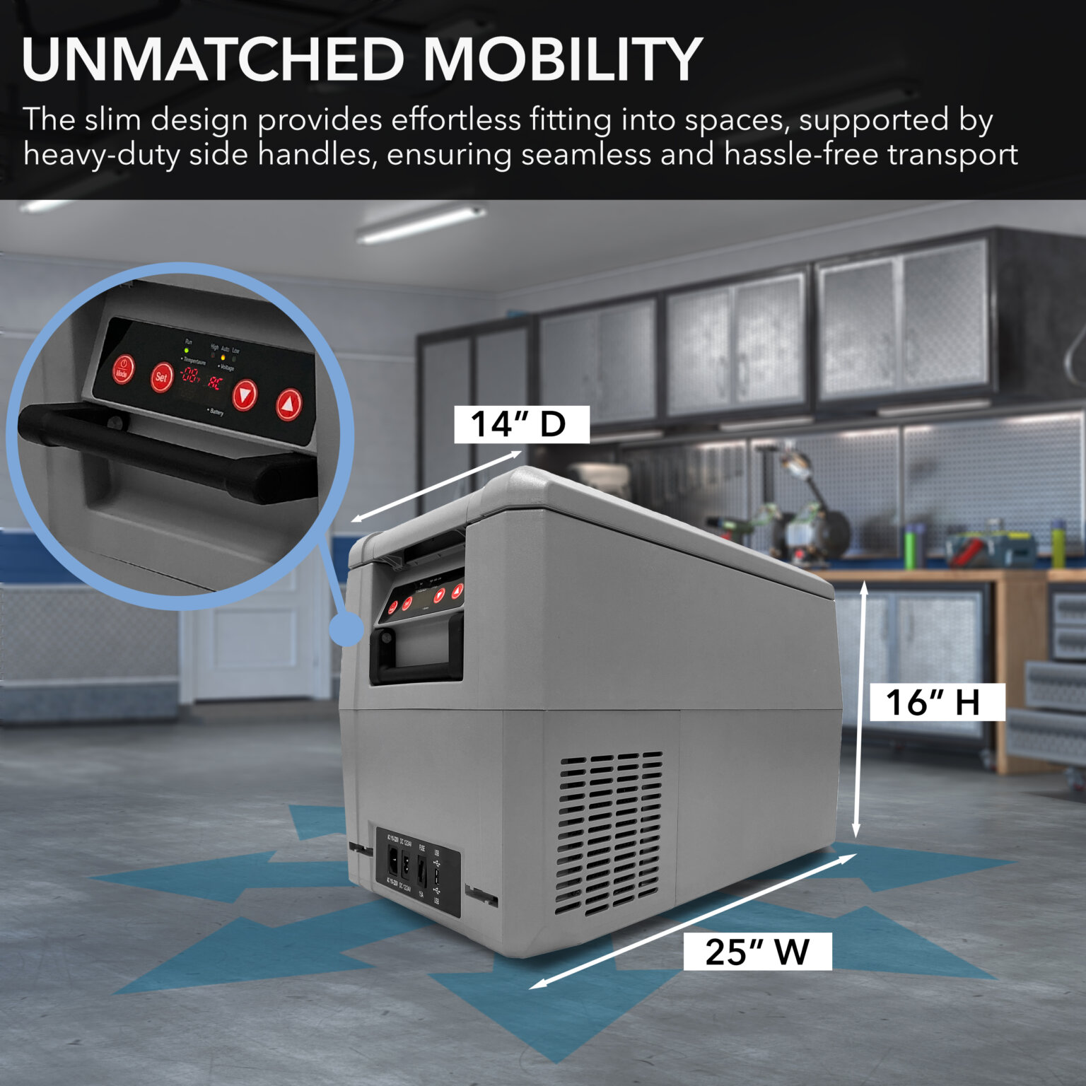- Non-slip rubber mat that maintains grip on the surface of the portable freezer to prevent drinks from spilling or sliding